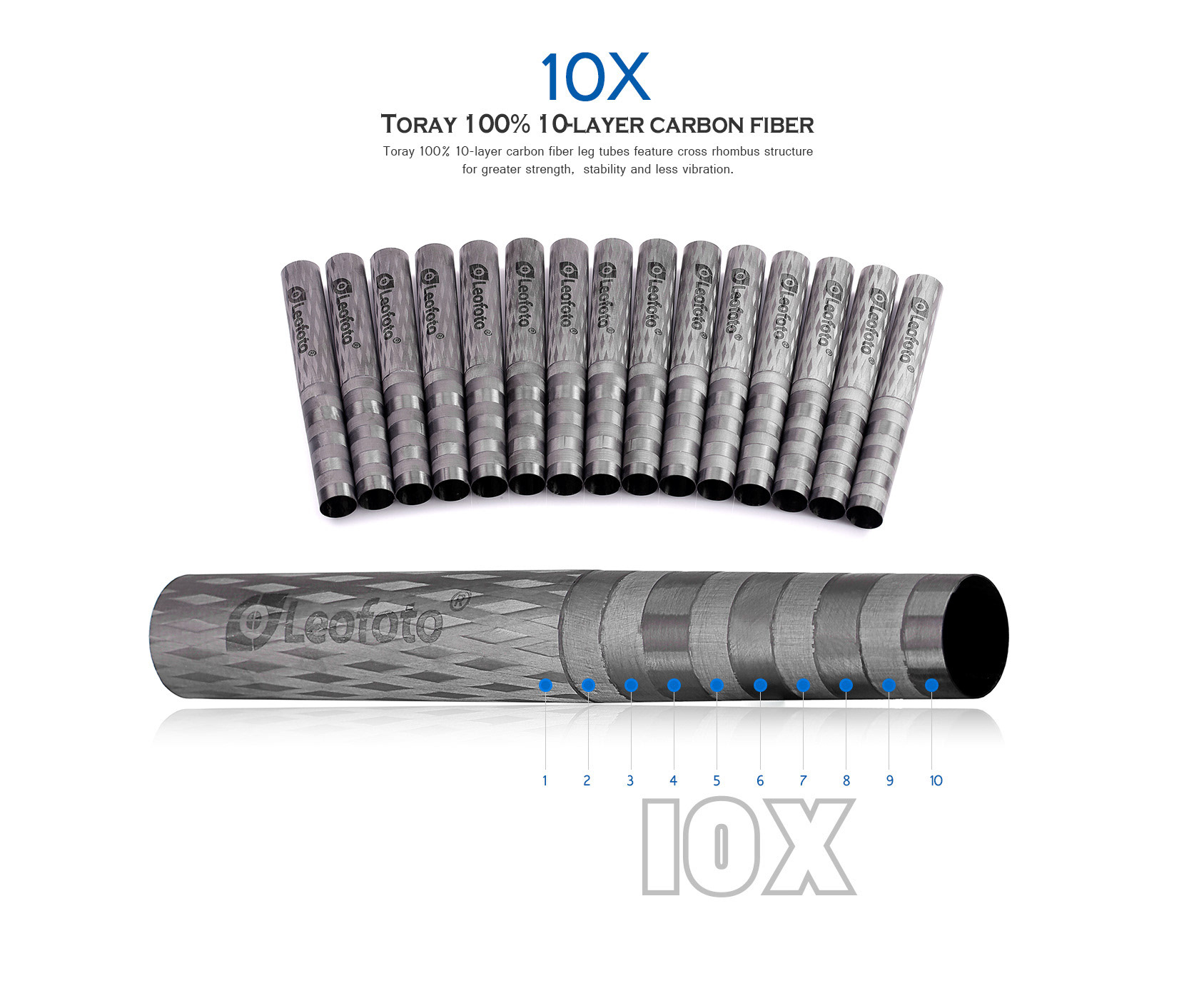 -Made of carbon fiber, which becomes a resistant and durable tripod